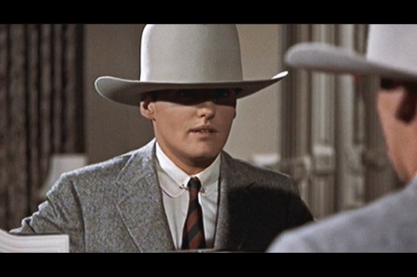 The second half of the film takes place about 15 years later than the scene where Dean’s Jett Rink finds oil. He has now become a savvy and somewhat pompous business man. This is what I mean about seeing a completely new James Dean performance. He is so different from than the younger Rink, but with hints at his earlier self. It is just so wonderful. Apparently Dean had died before post-production finished on the film and some of his lines at the end of the film had to be dubbed over by Nick Adams. Regardless, his performance in this film earned Dean his second consecutive posthumous Best Actor nomination (he was nominated in 1955 for his performance in East of Eden). Ultimately, he lost the award to Yul Brynner in The King and I.