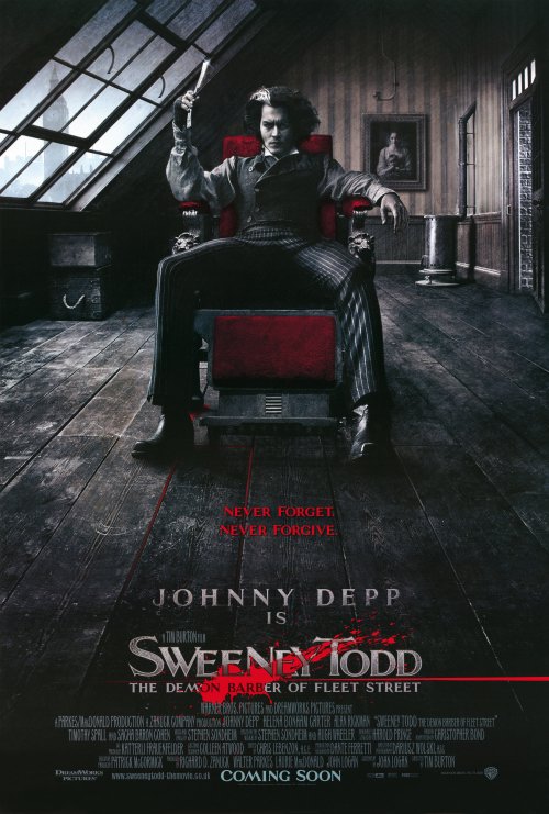 Burton’s adaptation of Stephen Sondheim and Hugh Wheeler’s Tony Award-winning 1979 musical Sweeney Todd: The Demon Barber of Fleet Street was both a critical as well as box office success. This was Burton’s 6th collaboration with Johnny Depp and his 5th with Helena Bonham Carter. The film wound up on several critics’ Top Ten lists for 2007 and was nominated for four Golden Globe nominations – Best Actor in a Musical/Comedy – Johnny Depp (he won), Best Actress in a Musical/Comedy – Helena Bonham Carter, Best Director – Tim Burton (his first, and so far, only Golden Globe nomination) and Best Musical or Comedy (it won). It was also nominated for three Academy Awards – Best Actor – Depp, Best Costume Design and Best Art Direction (it won). Burton was also nominated for Best Director at the Critics Choice Awards (his second nomination) and was named Best Director of the year by the National Board of Review. The film had a $50 mil budget and was released on December 21st, 2007 grosssing over $9 mil in its opening weekend. It grossed $52.9 million in U.S., $99.62 mil in foreign countries, with a worldwide total of $152.52 mil. I really enjoyed this film when I first saw it, but I’ve yet to see it since. I remember really loving how stylized it was and its wonderful use of deep, dark colors.