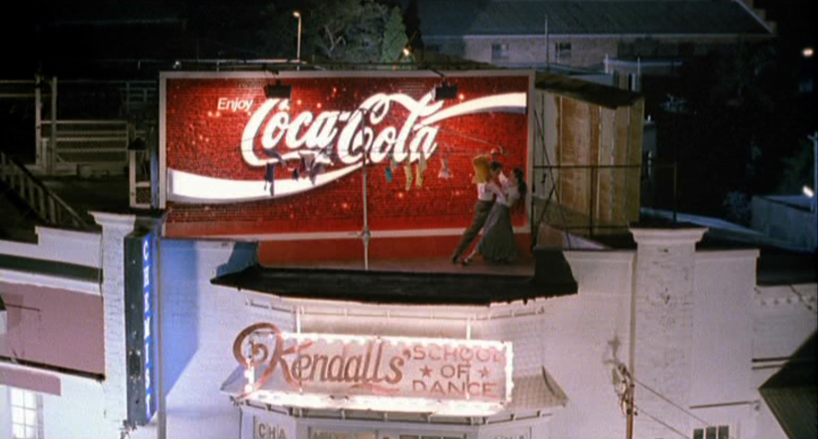 This scene here, where the film’s leads – Tara Morice and Paul Mercurio, practice their steps on a rooftop in front of a Coca Cola ad immediately made me think of Moulin Rouge!. I love how Catherine Martin’s art direction here is so similarly opulent to Moulin Rouge!, but instead of being over-the-top, she showcases the everyday beauty that can be found in cities. It’s just such a lovely shot.