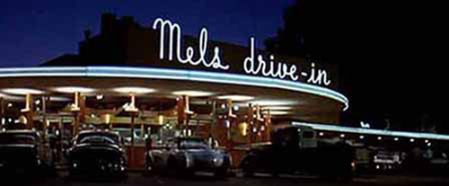 I will always love this movie for bringing Mel’s diners back to existence. Apparently the one that was used during filming was closed, but re-opened for the film. It has subsequently been demolished. There are two different, but related, Mel’s chains operating in California – Mel’s Drive-In and Mel’s Original. The Mel’s Drive-In ones are the ones that are most directly related to the one used in this film. I used to live two blocks from one of the four Mel’s Drive-In restaurants located in San Francisco and I ate there A LOT. They had the best milkshakes. The whole diner was filled with American Graffiti memorabilia and it was difficult to have a meal there, or a milkshake even, without thinking about certain scenes in the film and how much I love it.