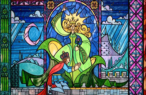 4. Is there any way to find the ending stained glass picture in full? I feel like I can only find it cut off or cropped and I really wanted to blow it up to hang on a wall. I figured yall might know something!