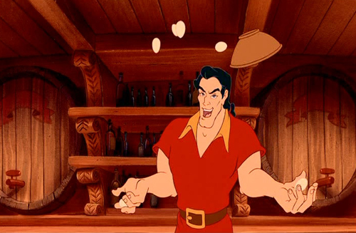 I’m pretty sure every time I eat eggs I think about Gaston and how he used to eat four dozen eggs so he’d grow large and now he eats five dozen so he’s roughly the size of a barge. He’s one of my favorite love-to-hate-him Disney villains. He’s just such an obnoxious jerk, but you almost feel like the writers based him on a real person, you know?