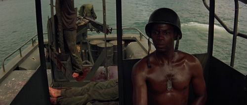 After receiving his orders (to seek out and “terminate” rogue Colonel Kurtz), Willard then joins the crew of the Erebus. In Greek mythology, Erebus is the son a primordial god, Chaos, and represented the personification of darkness and shadow. Something tells me the name of the boat is no coincidence. The boat’s commander is George “Chief” Phillips (Albert Hall). Hall’s Chief is stoic through most of the film, preferring to “remain on the boat” as often as possible. It isn’t until towards the end of the film that he shows some extreme emotions, something that leads him to a terrible fate.
