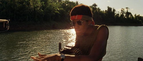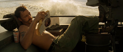 Sam Bottoms plays surfer-champ-turned-soldier Lance B. Johnson. I loved his progression throughout the film, starting out kind of laid-back and by the end of the film becoming as cracked as everyone else. During one particularly horrifying scene, the crew encounters a boat with a woman on it that appears to be suspicious. One thing leads to another and the woman is killed, only to be revealed that the suspicious item on her boat was a yellow lab puppy. Johnson’s reaction to finding the puppy and his protective behavior towards it illustrates how so many of the men fighting this war are not cold-hearted soldiers; but rather men who love puppies. This idea goes hand-in-hand with Kurtz’s recommendation that if the army employed only men who were committed to doing only what needed to be done to win the war, they’d win the war.