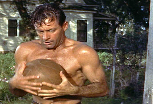 First off, I’d like to say that William Holden gives one of his best dramatic performances in this film; he really does. However, my memory tends to focus on the fact that he is shirtless for about 80% of this film. Maybe that’s an exaggeration, but he is shirtless an awful lot. Shirtless William Holden is one of my favorite things in all of cinema history. Actually, Holden also starred in 1955 Best Picture nominee Love Is a Many-Splendored Thing (and if the poster is to be believed, he’s shirtless through most of that film as well). Holden plays Hal Carter, a former college football star, who is now an unemployed drifter after a failed Hollywood acting career. The film covers a 24-hour period, starting on Labor Day (September 5, 1955). Hal has come by freight train to a Kansas town, intending to visit his fraternity buddy, Alan Benson (Cliff Robertson). During this 24 hours Hal shakes up this sleepy town and falls in love with one of its residents: Madge Owens (Kim Novak), whose mother (Betty Field) hopes she will marry Alan.