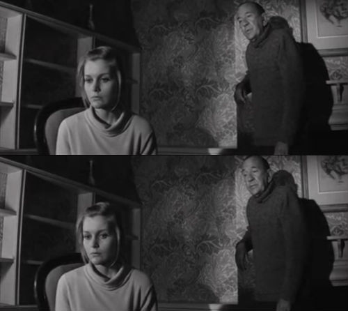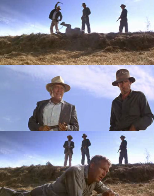 Peter Falk: I can’t see you, but I know you’re here. I feel it. You’ve been hanging around since I got here. I wish I could see your face. Just look into your eyes and tell you how good it is to be here. Just to touch something. See that’s cold; that feels good. Or to smoke. Have coffee. Or if you do it together, that’s fantastic. Or to draw. You know, you take a pencil and you make a dark line, then you make a light line and together it’s a good line. Or when your hands are cold and you rub them together. See that’s good, that feels good. There’s so many good things, but you’re not here. I’m here. I wish you were here. I wish you could talk to me. . .cuz I’m a friend. Compañero