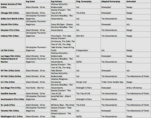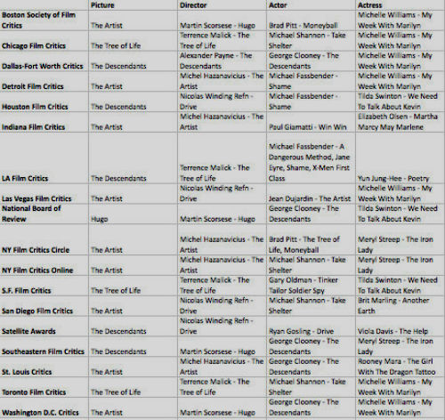 Posted on December 19, 2011, in Precursors and tagged Precursors, the Academy Awards, The Oscars. Bookmark the permalink. Leave a comment.