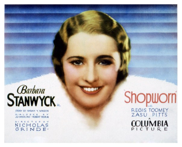 Shopworn (1932) – Barbara Stanwyck stars in this class-conscious melodrama in which she plays a waitress who falls in love with a wealthy college student (Regis Toomey). But his mother resorts to devious means to end the relationship.