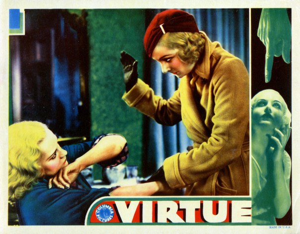Virtue (1932) – Pat O’Brien plays an honest, hard-working cab driver, with Carole Lombard as Mae, a prostitute he mistakes for an unemployed stenographer. After they get married, Mae’s past comes back to haunt her when a duplicitous acquaintance plunges her into a financial crisis that she tries to hide from her husband.