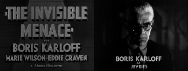 The Invisible Menace is a pretty run-of-the-mill murder mystery set at an army camp, but it does feature Karloff styled like Dashiell Hammett with silver-foxy hair and spectacles. It also features Marie Wilson as a newlywed bride, whose comic skills and angelic features are to die for.