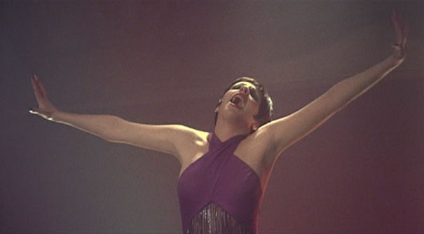 Arguably her most iconic song performance in the film is her rendition of “Mein Herr,” clad in nothing but a black vest, sparkling tights and a bowler hat. Never has a chair been quite so sexy, never will one be again. In the original (non-musical) play, Sally is a bad singer and her dreams of being a real actress are clearly delusional. But in the musical version (for obvious reasons), Sally is a great singer and her dreams seem like maybe they might come true someday after all. Liza’s voice and presence make it seem even more likely, though as the story progresses, you realize the one thing Sally really doesn’t have on her side is luck.
