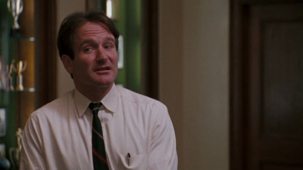 I’m trying to remember the first time I saw this film and I have a vague recollection of seeing it on TBS when I was in middle school. I do know that when I was a freshman or sophomore in high school one of my teachers showed it and we had an in-depth discussion of the film’s themes (well, as in-depth as you can in a podunk small town high school class filled with asshole 14 years old – I include myself in that description). A lot of what I’ll write about here is based on that discussion of the film, actually. I guess it was sophomore year because I think it was the class where the teacher who normally taught geography/history had to take over our English class, so mostly instead of reading books we watched films and discussed them. It was kind of a wonderful class if memory serves. At least, for me it was, because, well, movies. Dead Poets Society was nominated for four Academy Awards, winning one: Best Original Screenplay (won), Best Actor Robin Williams, Best Director and Best Picture. The other films nominated for Best Picture that year were Born on the Fourth of July, Field of Dreams, My Left Foot and winner Driving Miss Daisy.