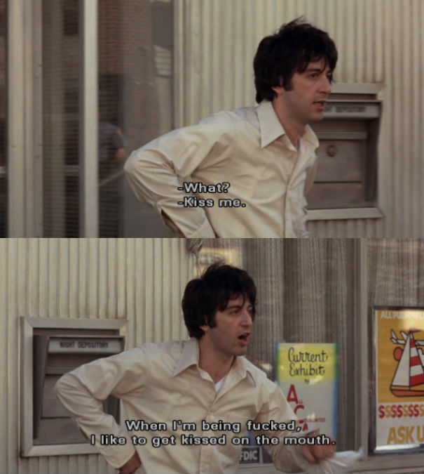 You can read about the Attica Prison Riots here. Here is where Sonny begins to be the prototypical anti-hero of the 1970s. He’s out for social justice, even while committing a crime. The crowd cheers for and with him. He’s standing up against “the man” and rebelling in a way most people only dream of. This line was named the 86th most iconic line in American film by the AFI in 2005.