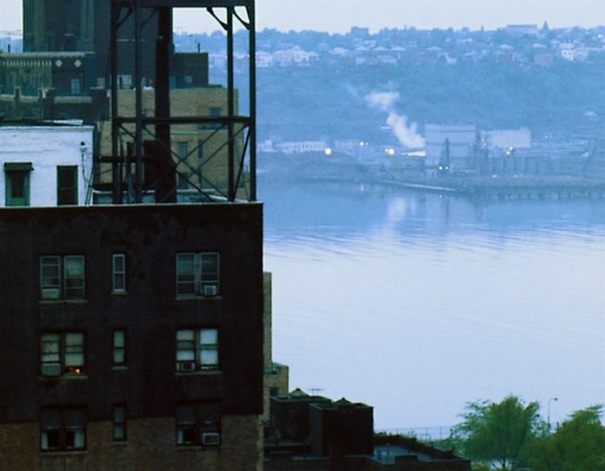 Eventually, Akerman moves out to the rooftop of the hotel, panning its entirety. It’s a beautiful dawn, with interesting juxtaposition between the water and the trees and the decrepit brick buildings that make up the skyline.