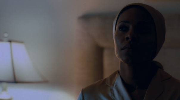 However, a little bit later, Kenya decides to have the weave taken out and try having just her own natural hair. You get a hint later on in the film, that most of Kenya’s behavior is what it is because of her controlling mother, including have a long, straight weave in at all times. I like this shot because I’m not sure that I’ve ever seen a film that really showed how one attached a weave to one’s head (or has it taken out again)!