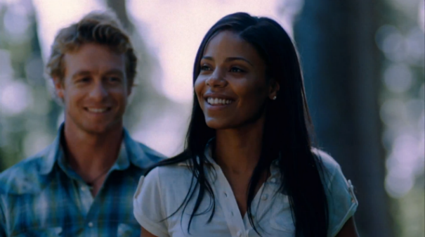 One of her co-workers sets her up on a blind date, who just happens to be a very white, blonde man named Brian (Simon Baker). This immediately makes Kenya uncomfortable (in a very funny scene), wherein Kenya tries to be a little more “black” than she usually is, to counter balance having coffee with a very white man. Brian can sense that she is uncomfortable and tries to remedy the situation, but it ends with Kenya leaving. Baker is so charming (and so damn hot!) throughout the movie. His light touch balancing off of Sanaa Lathan’s uptight, but perfectly timed with comic and dramatic moments performance, really is what makes this film work. Also, they have chemistry to boot.