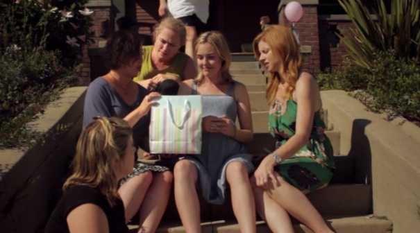 She agrees to visit her sister Emily (Sarah Rafferty) in California for the baby shower because her sister knows moms and Sarah doesn’t really even have any friends (already a red-flag for how messed up Sarah is). This baby shower does not end well. Before it even starts, we start to find out a little bit more about Sarah and Emily’s family: there’s clearly something up with their relationship with their mother. After freaking out at the baby shower and then being “comforted” with a gift wherein you paste in things about your mother, yourself and then your baby, Sarah says she doesn’t have a mother. The meaning of this statement takes up the rest of the movie.