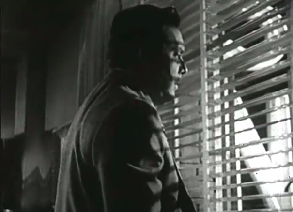 Also proof it’s noir: blinds! But, actually, most of the film is told in an extended flashback, a technique often used in film noir.