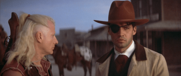 Okay, so Posse has a lot going on. Mario Van Peebles stacks this cast with literally everyone you could imagine. You have scenes set in the Spanish-American War in Cuba and in a casino in New Orleans and in the Old West (maybe the Dakotas??). He wants to turn the idea that the Old West was lily white – there’s a title card that state there were more than 6,000 black cowboys after the Civil War, but you wouldn’t know it from Hollywood. Peebles does his best Man With No Name. Blair Underwood has sideburns and his charming af. The film is bookended with scenes featuring Woody Strode, and footage of him from Once Upon A Time In The West (as well as other classic westerns with Black cast members) plays over the credits. But what I want to draw the most attention to is that Billy Zane loses his eye, dons an eyepatch, and delivers one of his most gloriously committed and bonkers performances (and that’s saying a lot) as the film’s big bad. Delicious.