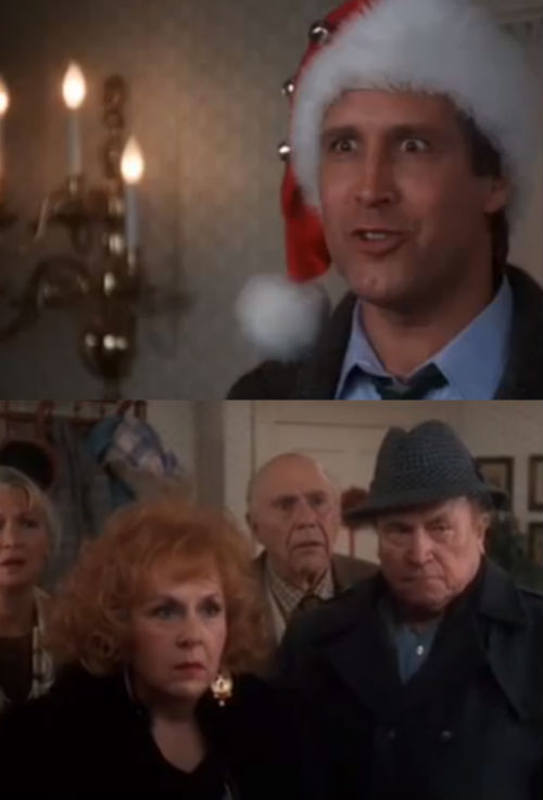 Clark Griswold: Where do you think you’re going? Nobody’s leaving. Nobody’s walking out on this fun, old-fashioned family Christmas. No, no. We’re all in this together. This is a full-blown, four-alarm holiday emergency here. We’re gonna press on, and we’re gonna have the hap, hap, happiest Christmas since Bing Crosby tap-danced with Danny fucking Kaye. And when Santa squeezes his fat white ass down that chimney tonight, he’s gonna find the jolliest bunch of assholes this side of the nuthouse.