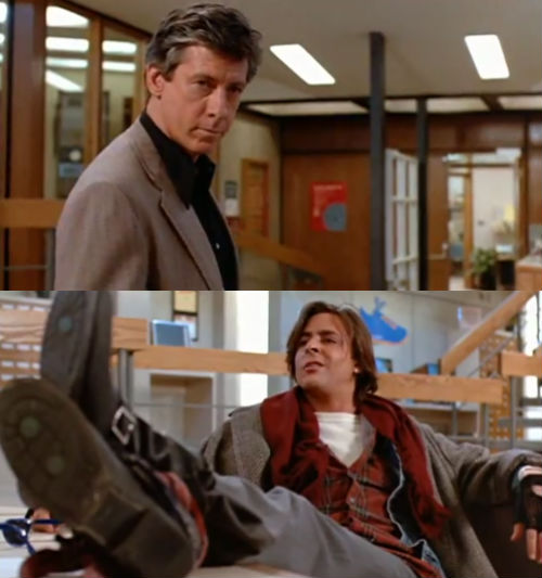 Buck Russell: I don’t think I want to know a six-year-old who isn’t a dreamer, or a sillyheart. And I sure don’t want to know one who takes their student career seriously. I don’t have a college degree. I don’t even have a job. But I know a good kid when I see one. Because they’re ALL good kids, until dried-out, brain-dead skags like you drag them down and convince them they’re no good. You so much as scowl at my niece, or any other kid in this school, and I hear about it, and I’m coming looking for you! Take this quarter, go downtown, and have a rat gnaw that thing off your face! Good day to you, madam.