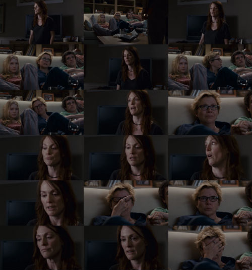 Jules: I need to say something. It’s no big secret your mom and I are in hell right now, and, uh. . . bottom line is, marriage is hard. It’s really fucking hard. Just two people slogging through the shit, year after year, getting older, changing. It’s a fucking marathon, okay? So, sometimes, you know, you’re together so long, that you just. . .you stop seeing the other person. You just see weird projections of your own junk. Instead of talking to each other, you go off the rails and act grubby and make stupid choices, which is what I did. And I feel sick about it because I love you guys, and I love your mom, and that’s the truth. Sometimes you hurt the ones you love the most. I don’t know why. You know, if I read more Russian novels, then. . . Anyway, I just wanted to say how sorry I am for what I did. I hope you’ll forgive me eventually. Thank you.