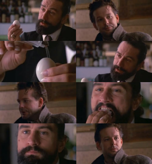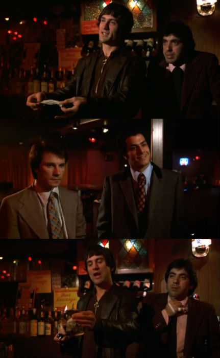 Johnny Boy: Hey Mikey, you’re really something, you know that? What’s the matter? You too good for this ten dollars? You too good for it? It’s a good ten dollars. You know something, Mikey, you make me laugh, you know that? You know, I borrow money all over this neighborhood, left and right from everybody, I never pay them back. So, I can’t borrow no money from nobody no more, right? So who does that leave me to borrow money from but you? I borrow money from you, because you’re the only jerk-off around here who I can borrow money from without payin’ back, right? Right? You know, ’cause that’s what you are, that’s what I think of you: a jerk-off. You’re smiling, right, because you’re a jerk-off! You’re a fucking jerk-off. I’ll tell ‘ya something else, Mikey, [lights ten-dollar bill on fire] I fuck you right where you breath, because I don’t give two shits about you or nobody else.