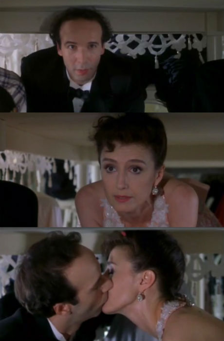 I believe the first time I saw this movie my mother and I had taped it off of Encore when they were celebrating recent Oscar winners. It had already won all its awards and we had already cheered for Begnini on the strength of his personality alone. We wanted to rent it from the local video store, but all they had was a dubbed version, full frame (aka cropped) VHS (we didn’t have a DVD player at this point). We were overjoyed when we found it widescreen and subtitled, and taped it because it was playing while I was in school. That taped version would later be taped over (I forgot to pull out the chip!), but that is a family controversy for another day. I still remember how much I loved that film and how excited I was for it to win even when I hadn’t seen it yet. When we did see it, we were excited all over again. The film was nominated for seven Academy Awards, winning three: Best Dramatic Score (won, they still had a Comedy score category at this point, which was won by Shakespeare in Love), Best Foreign Language Film (won), Best Film Editing, Best Original Screenplay, Best Actor Roberto Benigni (won), Best Director and Best Picture. It was also only the 6th foreign language film to be up for Oscar’s top prize; only eight films have done this in all of Oscar’s history: Grand Illusion (1938); Z (1969); The Emigrants (1972); Cries and Whispers (1973); Il Postino (1995); Life Is Beautiful (1998); Crouching Tiger, Hidden Dragon (2000) and most recently Amour (2012). Letters from Iwo Jima, which was nominated for Best Picture in 2006, was entirely in Japanese, but it was an American production (and directed by Clint Eastwood). The other films up for Best Picture for 1998 were Elizabeth, Saving Private Ryan, The Thin Red Line and winner Shakespeare in Love.